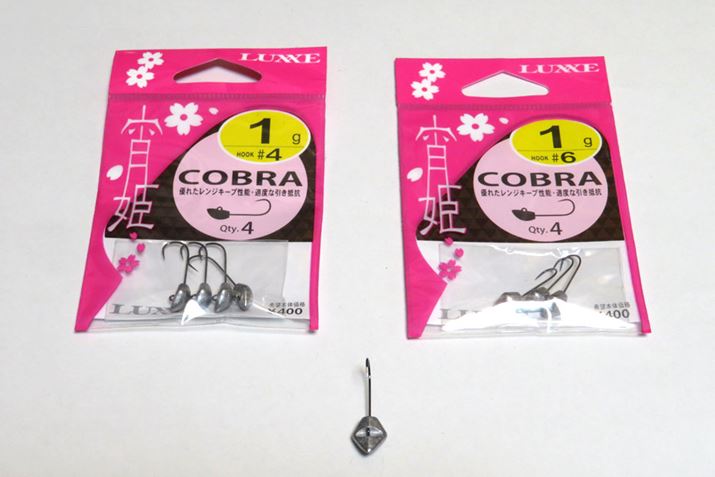 ヘッドの形にコブラヘッド状を採用しており、適度に水をとらえるため浮き上がり性能が高いリグ。高いレンジキープ力が魅力だ。重さは0.5g、0.75g、1g、1.5g、2g、2.5gが、針サイズは#3〜#6がそろう。1袋4個入り