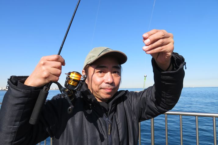 リールは自前の「ダイワ ワールドスピン2000」。ラインはジグを遠くに飛ばせるように、「フロロカーボン」0.3号を使用した