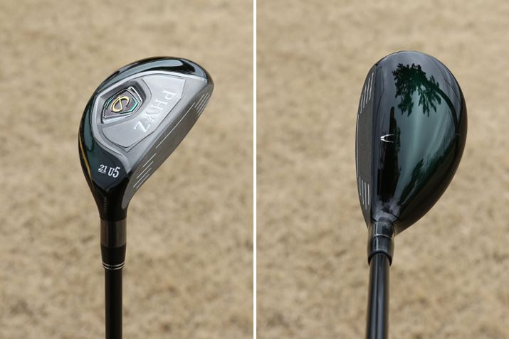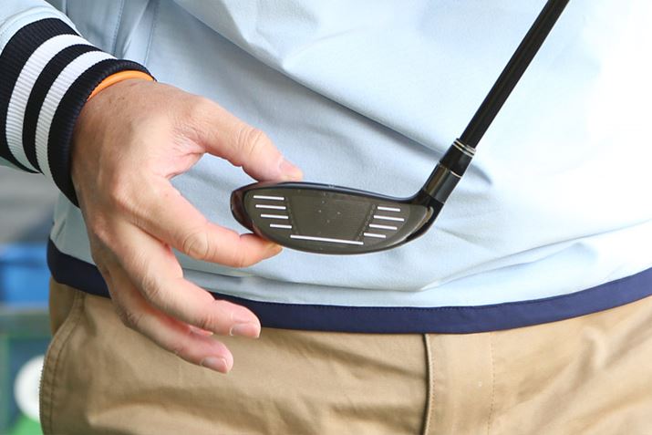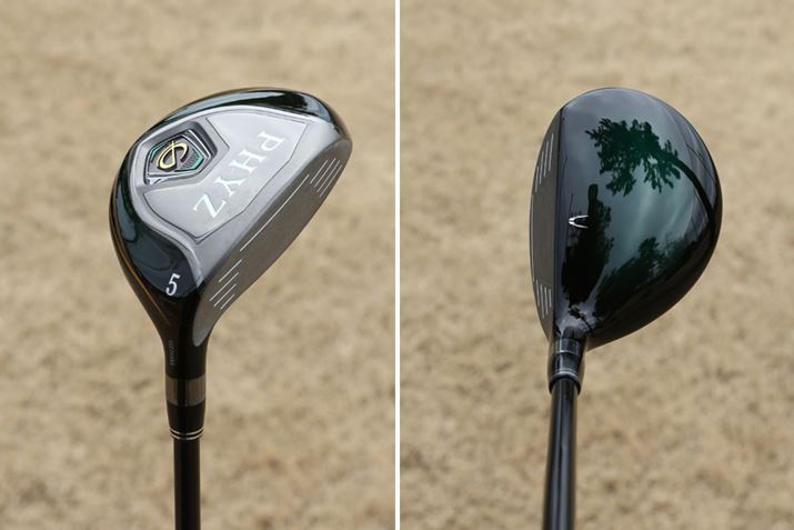 続いてはFW(フェアウェイウッド)。一見UT(ユーティリティー)? と思うほどコンパクトに設計されています。FWはヘッドを大きくすれば重心を深くできるので、ボールを上げやすく打点のミスに強く作りやすいのですが、半面、ラフなどでの摩擦抵抗が大きくなったり、ミートしにくくなってしまったりといったデメリットもあります。このPHYZのFWはミートしやすさを第一に考えて作ったと思われます。今ではヘッド自体を軽く仕上げ、余剰重量を後方に配置することによって重心を見た目以上に深くすることができるので、そういった技術も使いつつコンパクトに仕上げたのだと思います。