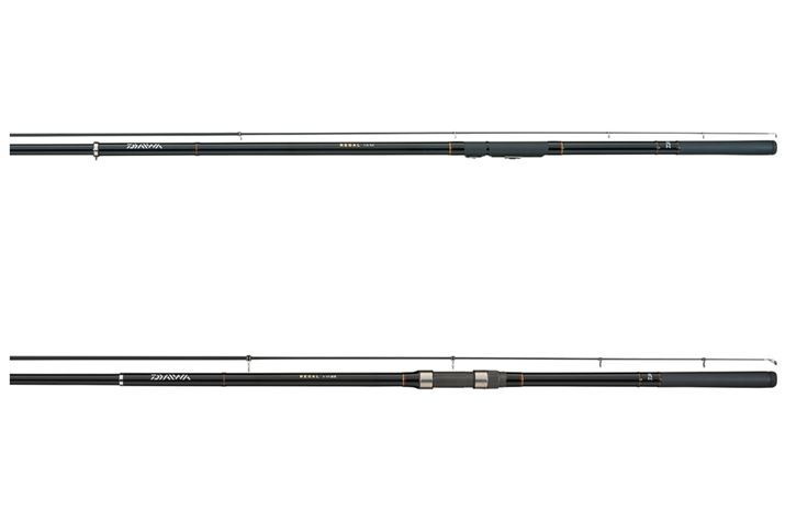 1.5〜5号までの5種類の硬さをラインアップしており、3号は4.45mと5.32mの2種類の長さをそろえる。写真上は1.5-53モデル、下は4-45遠投モデル