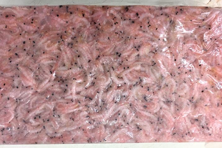 まき餌を配合したら、解凍した「オキアミブロック」を必ず混ぜること。「オキアミブロック」を食べることで警戒心を解いたクロダイが、針に付けたオキアミも食べてくれるのだ