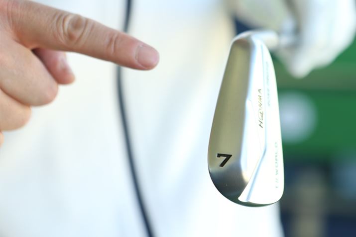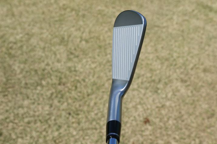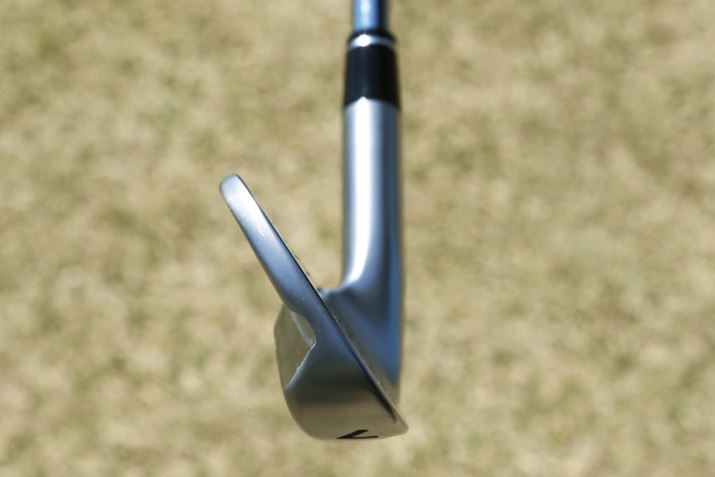 1つ目は「アドレス時のクラブへの信頼感」。トゥ側を高めに、ヒール側を低めにデザインすることでアップライトに見えるような工夫がされていて、構えたときにつかまるイメージを持たせてあります。またトップブレードをまっすぐに設計することで、目標に構えやすいようになっていますね。