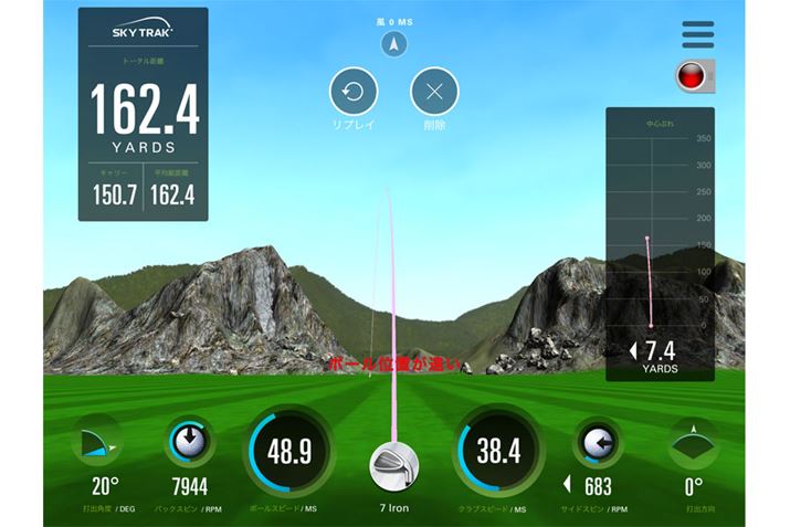 #5:「モーダス3」での数値です。しっかり右に出せてドローが打てるのは操作性のいいアイアンの証。高さもしっかり出ていてスピン量も適正。データ上ではランが多めに出ていますが、実際のコースではグリーンに直接落としてもランは1〜2ヤードで済むでしょう