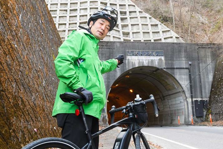 走り始めて、マジでバッテリーをカメラマンに預けてよかったと痛感。ここまでは登り坂があっても、平坦な道や下りが少しあったため、体力の回復を図ることができたのだが、「道の駅どうし」を出発してからはひたすら登り。「回転数さえ維持していれば、アシストの力で登ってくれる」と自分に言い聞かせ、アシストをフルに活用できる10km/h以下で走っていく。完全に自転車のモーターに頼って登るしかなかった。