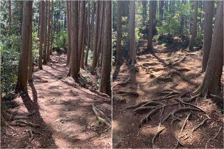 今回のテストも東京・青梅市の青梅丘陵ハイキングコースにて。走り始めると、その走行感はオンロードシューズに近い感じがし、グイグイとスピードを上げられるタイプのシューズであることがわかる。トレイルランニングシューズでも足の保護性を重視したタイプだと、こういった走り心地は得られず、もう少し鈍重な感じになってしまうが、「フライトトリニティ」は軽快な走行感で、特に下りやゆるい上りでそれを感じられるだろう。