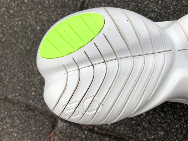 ペースとしては6分45秒/kmからスタートして、最後は5分30秒/kmまで上げて日課の6kmランを終えた。自分の足でしっかりと着地して、シューズに頼らずにみずからの脚力で進むという感覚は従来通り。新たなソール形状と切り込みの採用による屈曲性のアップも感じられた。