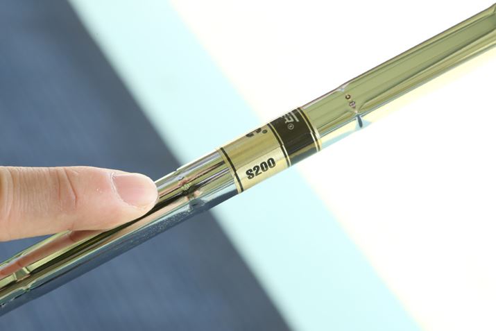 今回は5番、7番、9番と3本お借りし、それぞれをじっくり試打させてもらいました。装着されているシャフトはDG(ダイナミックゴールド) S200。普段自分が使用しているアイアンよりも重量があります。