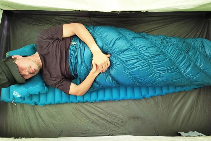 胸から上は完全に露出。スリーピングバッグがずれる恐れはあるが、胸元から空気が入り、暑苦しさが減る