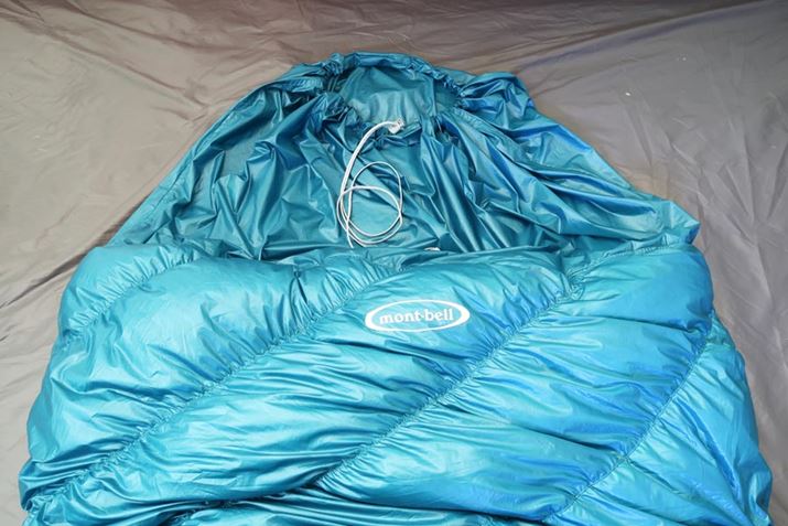 このように、最上部にドローコードが付いているのがポイントだ。体を入れてから頭だけを出し、巾着状に引き絞ると肩に引っかかり、寝相が悪い人でもスリーピングバッグが体からずれにくくなる。実際、ドローコードを締めないまま寝てみたら、知らないうちに自分の足でスリーピングバッグを蹴飛ばしてしまい、腹部が露出して少々寒い思いをした。暑い時期はあまり問題ないが、涼しい季節にはこのドローコードが重宝するだろう。