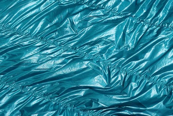 生地にテンションをかけていない通常の状態では、糸ゴムの伸縮性によって表面生地が絞られていることがわかる