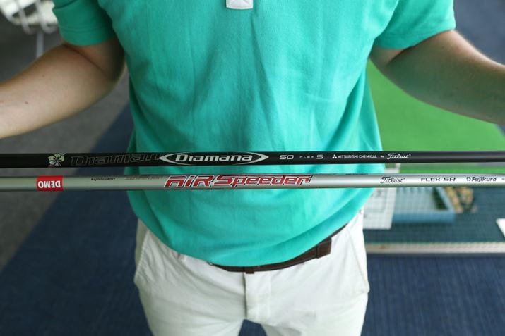 シャフトは標準として2種類用意されているモデルを打たせてもらいました。「Titleist Diamana(タイトリスト ディアマナ)」と「Titleist AIR SPEEDER(タイトリスト エア スピーダー)」です。ディアマナ、AIR SPEEDERともにアフターマーケット用に市販されているシャフトの名前ですが、はそれをタイトリストが独自にチューニングしたシャフトのようです。