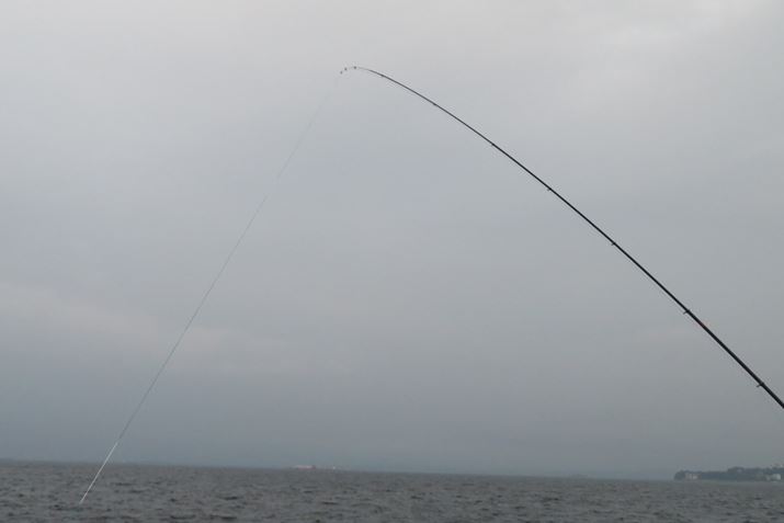 「コアスペックII青物」の柔軟なチューブラー穂先からくる全体のしなりが、魚との駆け引きを楽しく感じさせてくれる