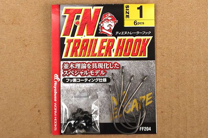 「スピナベサイト」に使うスピナーベイトには、トレーラーフックを装着すると圧倒的にフッキング率がアップする。川村さんイチオシは、ハヤブサ「T・Nトレーラーフック FF204」とダイワ「スティーズワームフックSS」の「TR(トレーラー)」。サイズは状況によるが、どちらも「#1」が無難だ。