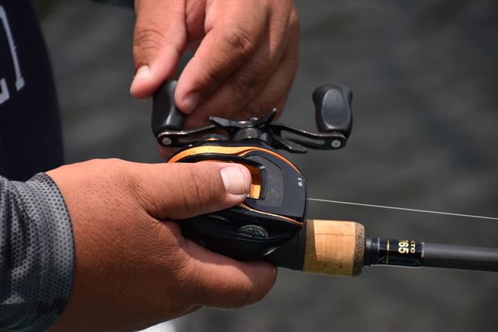 (2)タックルは、右投げなら左ハンドルのベイトリールを使う。