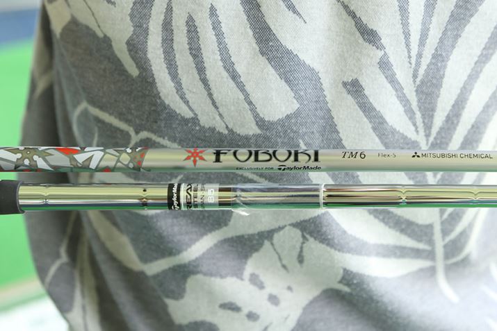 上がカーボンの「FUBUKI TM6 2019」カ。下はスチールの「REAX85 JP」。どちらもヘッドの特性をじゃましないクセの無いシャフトなので、自分が使っているアイアンやフェアウェイウッドの重さの流れに合わせて選ぶといいでしょう