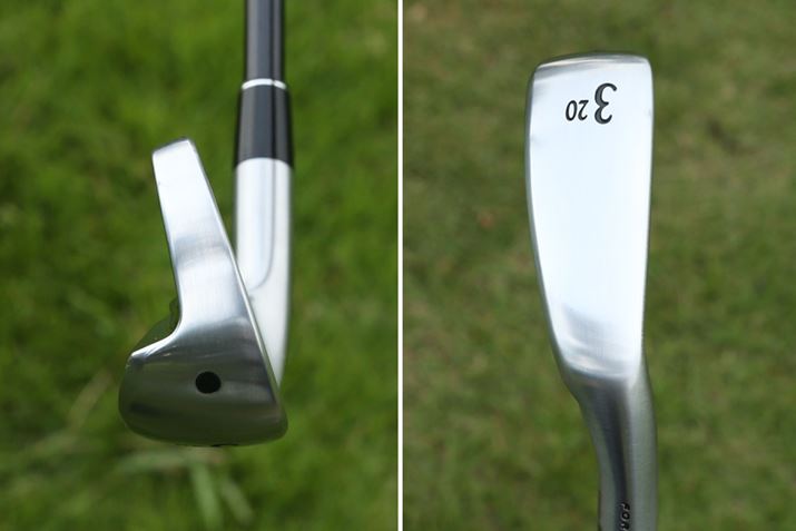 フェース側から見ると普通のアイアンです。フェース面には「クロムバナジウム鋼」という特殊鋼を使用。ボディは軟鉄を使用しているのでロフトとライ角の調整ができるのがうれしいですね
