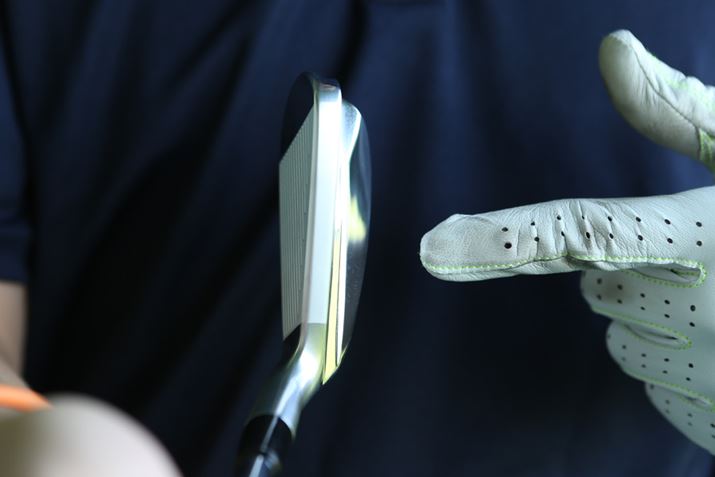 アドレスすると、フェース部分はアスリート向けのアイアンのようなきれいな顔で構えやすいです。ヘッドサイズは一般的なアスリートアイアンと比べるとひと回り大きいのですが、厚めのトップブレードやバックフェース側の張り出しをミラー仕上げにするなどして、大きさの違和感が出ないようになっています。見た目のプレッシャーもなく、かといってボテっとしたイメージもない、絶妙な形状に仕上がっていると思います。