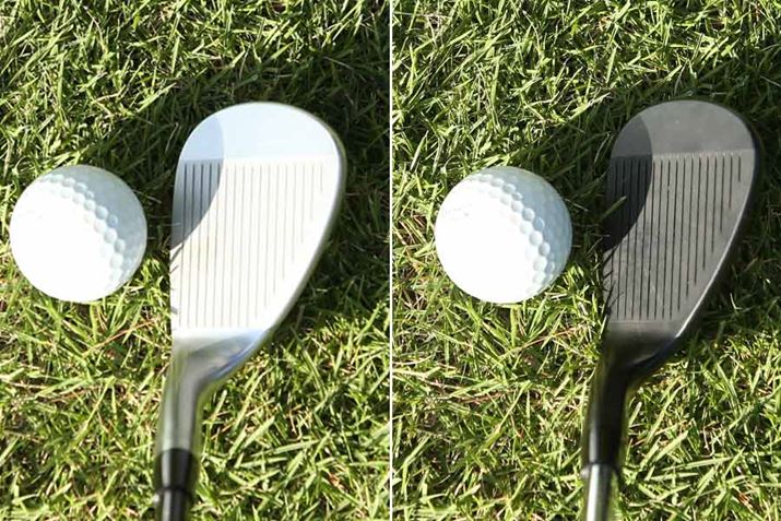 セミグースのネックをはじめ、日本人の好む形状をしっかり研究して作り込まれた顔は、非常に構えやすいですね。仕上げは、シルバーで反射を抑えた「ツアークローム仕上げ」(左)と、精悍(せいかん)なイメージで光を反射しない「ブラックPVD仕上げ」(左)の2種類を用意。ウェッジに求められる性能を細かい部分まで追求したモデルとなっています