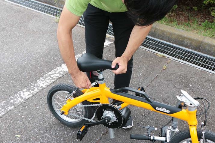 自動車に乗せる場合はハンドルを折りたたむだけでもいいが、電車で輪行するならサドルも1番下まで下げたほうがいい