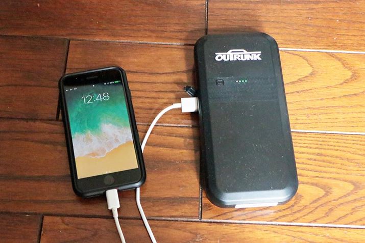 バッテリーは「アウトランクe」の電力になるだけでなく、スマートフォンなどの充電にも使える。ただし、充電しながら走行することはできない