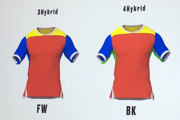 たとえばフォワードでは”しっかり着ている感”や”守られている感”が、バックスでは”速く動くこと”が重視されるなど、ポジションごとのプレーや戦い方、選手の体格の違いに合わせて3種類のジャージを開発。フォワード用とバックス用で異なるシルエットを採用し、素材や機能も専用のものとしたのです。