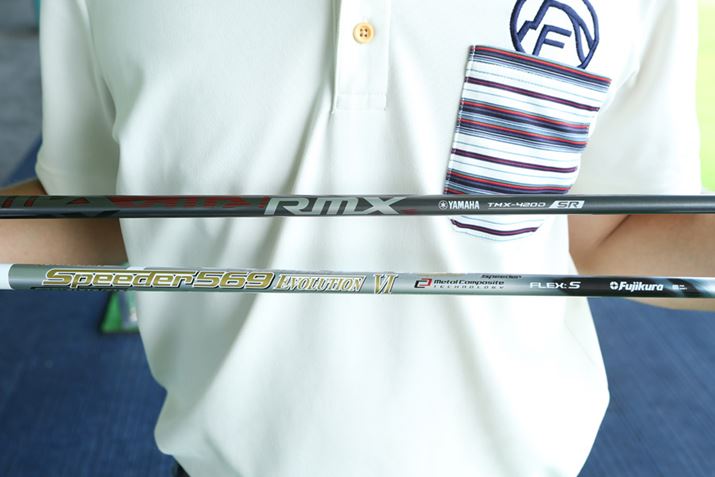 RMX120は純正シャフトのほかにカスタムシャフトが数種類用意されているのですが、今回はフジクラの「スピーダーエボリューション6」をお借りしたので、純正シャフトと打ち比べてみました。
