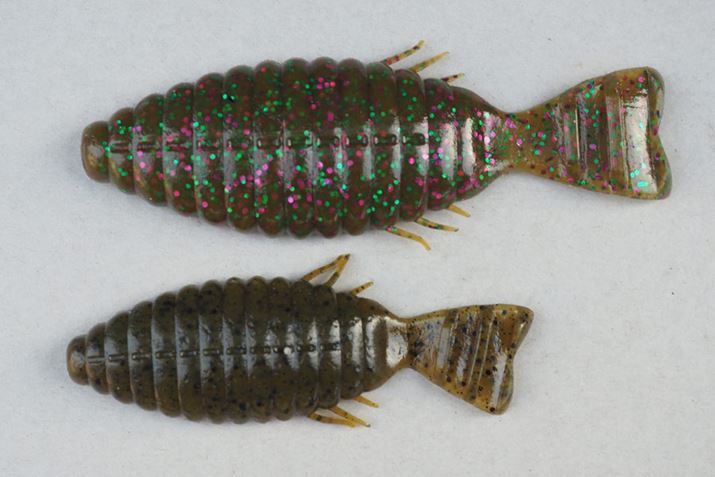 デプス「ブルフラット」は、ギル型ワームの代表格。さまざまなリグに対応し、たとえギルが存在しない水域でも結果を出している。2〜5.8インチまで5サイズラインアップされるが、多用されるサイズは、3.8インチと4.8インチだ