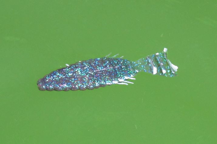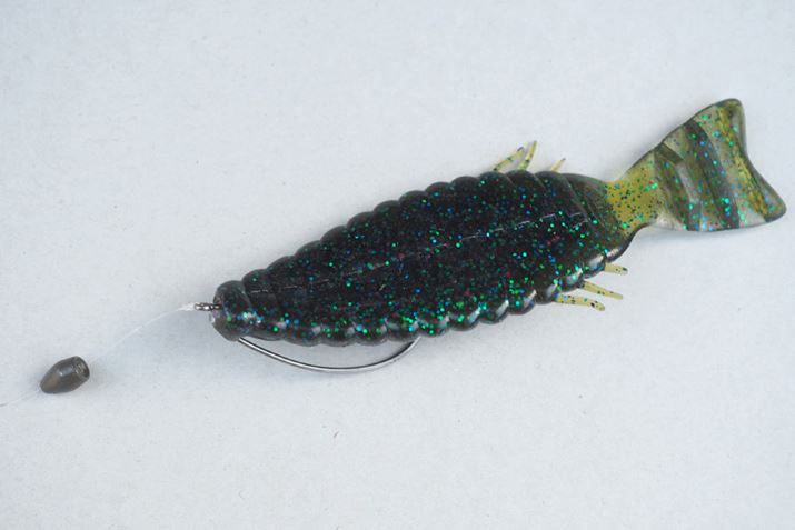 「ギル型ワームと呼ばれているけれど、別にブルーギルに限りません。フナになったり、カニになったり、カメになったり……。ブルーギルがいる、いないは関係なく、このワームは謎の食わせ能力を持っています。ぶっちゃけ、投げて沈めてるだけで釣れてしまうと言っても過言ではありません」(奥村さん)