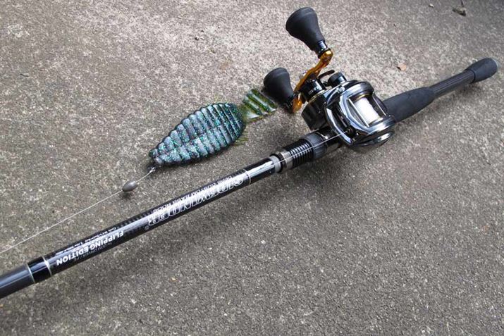 「使い方を全部紹介すると混乱してしまうので、代表格の『テキサスリグ』について紹介しましょう。岸際のカバー、沖のストラクチャー、地形変化、ハードボトムなど、どこでもいいので教科書通りの場所、バスが好むと言われているところにキャストして、ラインを張らずにフリーフォールさせてください」(奥村さん)