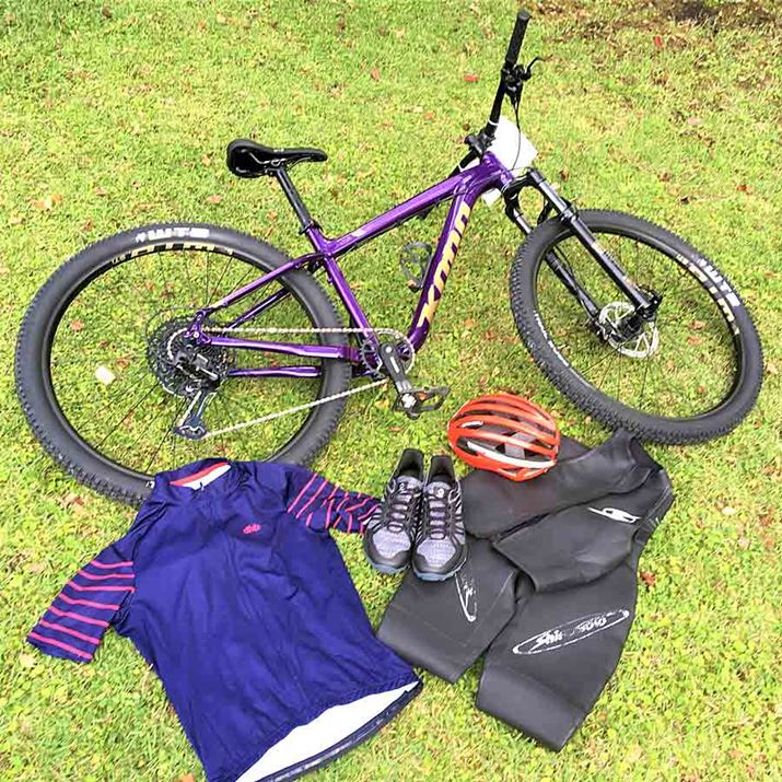 「エクステラ」に必須のギアは、マウンテンバイク、トレイルランニングシューズ、ウェア、ヘルメット、ウェットスーツ