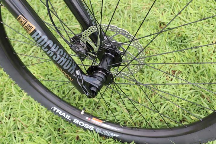 今回のレースでは、上り/下りともにコースが厳しく、平らなところはほとんどなかった。硬いと言われがちなアルミフレームだが、「6061アルミ」は柔軟性があり、さらにロックショック製のフロントサスもあいまって乗り心地は快適。荒れた路面でもスムーズに走ることができた。また2.25サイズという太いタイヤは幅広でエアボリュームが十分。あらゆるシーンで安定感抜群だった。あとは自分のテクニックが備わっていれば、もっと楽しめたかも……といった感じ。