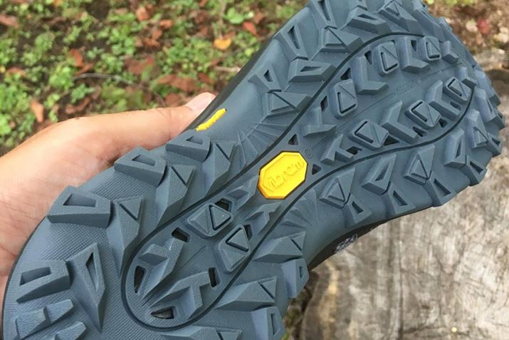 メレルといえば、トレッキングシューズのイメージが強いブランドだが、トレランやロードランニングのシューズもリリースしている。今回使用した「モーメンタス」は、安定性と軽量性、そしてあらゆる路面にも対応するグリップ力を持ち合わせるモデル。その中でも、アウトソールのグリップ力にはレース中にかなり助けてもらった。トレランのコースは、濡れた岩場や木の根、泥、乾いた土、アスファルトが順番を変えて繰り返し出てくるタフなもの。通常、ソールに泥がこびりついた状態でアスファルトを走ると、泥がなかなかソールから離れてくれず、しばらく「泥って意外と重いな〜」と感じながら走ることもあるが、このシューズの場合は素早く泥が排除され、スムーズに走ることができた。