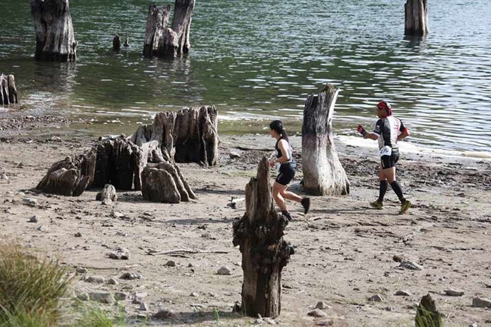 立木をくぐったり、湖の中をザブザブ走ったり。まさに「非日常」という言葉がぴったりのランコース