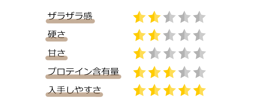 今回の中でプロテイン含有率が一番高く、外国産も凌駕しています。日本体育大学准教授で骨格筋評論家のバズーカ岡田さん監修という謳い文句はダテじゃありません。ナチュラルローソンで比較的入手しやすいそうですが、筆者は近所で買えず、ネットで購入しました。
