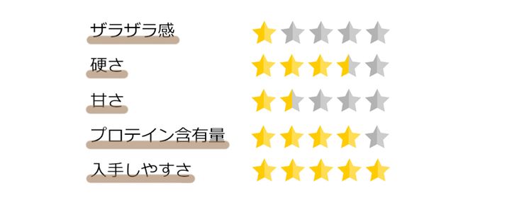 たんぱく質(プロテイン)の量をはじめ、カロリーや糖質といった気になる栄養素を比較しつつ、その味わいを中心とした商品特徴を紹介。プロテインバーにありがちな「ザラザラ感」や、「硬さ」「甘さ」「プロテイン含有量」「入手しやすさ」などの基準で評価していきます。