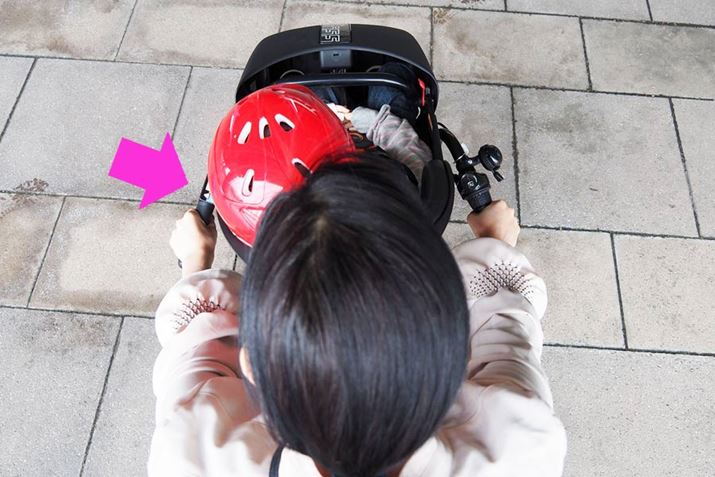 このように覆われる「コクーンルーム」は、子どもの乗せ降ろしの際に手間取りそうに思われるかもしれませんが、片手で開け閉め可能(下の動画参照)。それでいて、子どもが簡単に開けられないように2重ロック機構となっているので、安心です。