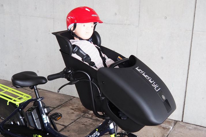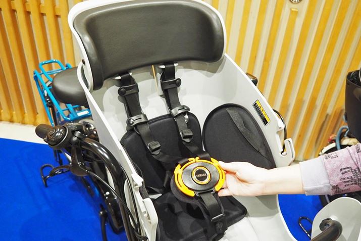 車体などの部分は従来どおりなので新モデルに特化したことではありませんが、今回試乗した「PAS Kiss mini un SP」の特徴を軽く紹介しておきます。「PAS Kiss mini un SP」でもっとも目を引くのが、フロント側にあるシェル型のチャイルドシート「コクーンルーム」。子どもの足先まで包み込む形状なので、安心感は高まるでしょう。なお、「PAS Kiss mini un SP」よりバッテリー容量が1.1Ah小さい12.3Ahの「PAS Kiss mini un」もラインアップ。重量など微妙に違うスペックはありますが、車体設計は同じなので「PAS Kiss mini un」にも「コクーンルーム」が搭載されています。