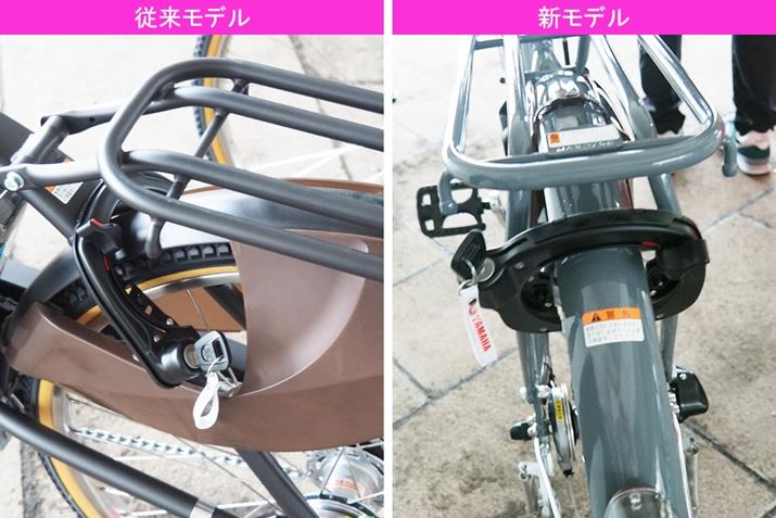 基本的な車体設計は従来モデルと同じですが、後輪のサークル錠の配置が荷台前方から後方に変更され、駐輪場などでより鍵の開け閉めがしやすくなりました