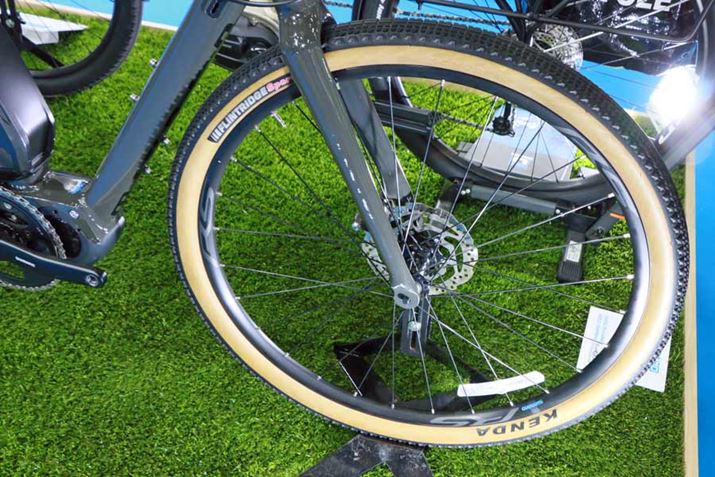 未舗装路も走れるかなり太めのタイヤを装備した、グラベルロードという位置付け。コンポーネントは「ティアグラ」の10速