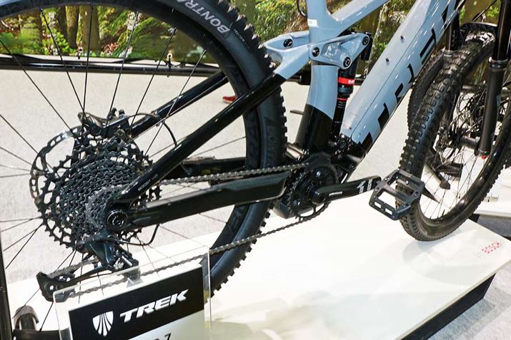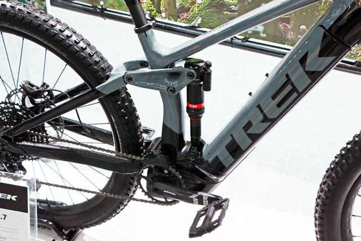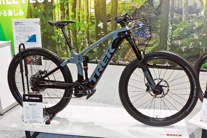 もっとも目立っていたのは、フルサスモデルTREK「Rail 9.7」。カーボンフレームとカーボンホイールを装備し、フルサスのe-MTBとしては軽量な21.5kgとなっている。価格は79万円(税別)で、2020年2月発売予定