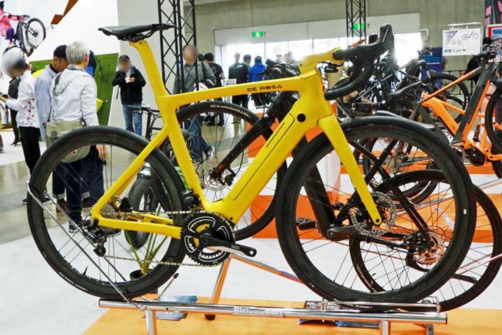 「M800」ユニットを搭載する「デローザ」ブランドのコンセプトモデル。発売は未定とのことだが、電動アシスト機能が付いているようには見えないシルエットはグッとくる人も多いはず