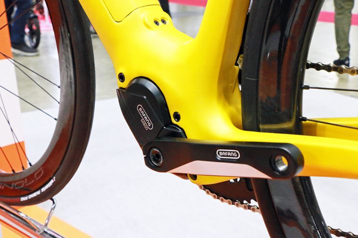 アシストユニットの供給メーカーとして、シマノ、ボッシュに続く第3の勢力となりそうなのが中国生まれの「Bafang(バーファン)」。日本国内ではあまり馴染みのないメーカーだが、海外ではすでに一大勢力となっており、イタリア「Benelli(ベネリ)」のe-MTBにもバーファン製アシストユニットが採用されている。今回のサイクルモードには、センタータイプの「M800」と「M500」、ハブモーター(インホイール)タイプの「H400」というアシストユニットとその搭載モデルが中心に展示されていた。このように、センタータイプとハブモータータイプの両方がラインアップされているのもバーファンの強みだ。