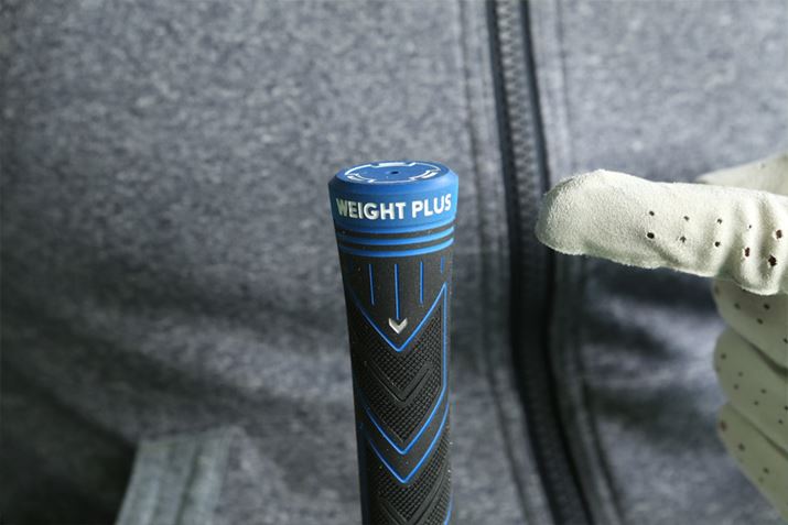 今回のゼクシオシリーズの目玉テクノロジーである「ウエイト・プラス・テクノロジー」はアイアンにも搭載されています。ドライバーの記事にて詳しく説明しましたが、これは、グリップエンドに重さを持たせることで理想のトップ位置に納めやすくさせるというもの。ひと言で言えば“カウンターバランス”で、ヘッドの重さを打ち消して軽やかに振れるような仕掛けといったところでしょうか。