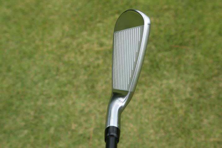 構えた感じは、安心感のあるいい顔です。飛び系やお助け系アイアンに多い“厚いトップブレード”や“長めのフェース”といった、パッと目に入る特徴的な部分がなく、誰でもスッと構えられる形状をしています。