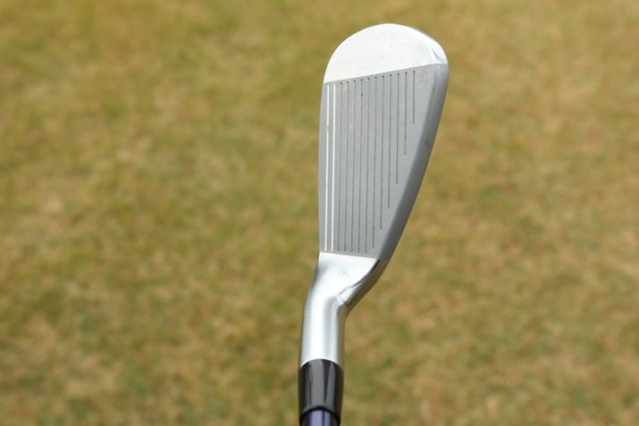 ソール後方が面取りされているとはいえ、かなり幅広いソール面を持っています。ソールが広ければそれだけ重心が下げやすくなるので、かなりの低スピンで高弾道のボールが打てそうですね
