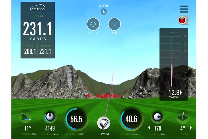 次にXの#3、Sフレックスを試打。イレブンより0.25インチ短く、なおかつヘッドサイズは同じなのですが、黒いカラーリングとクラウン後方の模様?のおかげかヘッドが小さく見えて、イレブンよりはシャープな印象を与えてくれます。想定ヘッドスピード41m/sを意識して振ると、こちらもライナー性の弾道が飛び出しました。違うのはつかまり具合。シャフトがSフレックスということを差し引いても、シャキッとした振り味で、かなり強く振っても応えてくれそうなしっかり感があります。