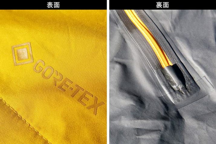 とてもしなやかなゴアテックスパックライトの生地。ゴアテックスのメンブレンに表地を張り合わせ、裏側を加工した「2.5層」構造となっており、28,000mmの耐水圧を持つ