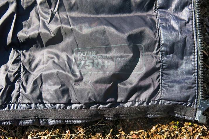 内部のダウンは750FP+と高品質。裾はドローコードなどで引き絞れる仕様ではないが、これは上にアウターを重ねた時にじゃまにならないようにするためだと思われる