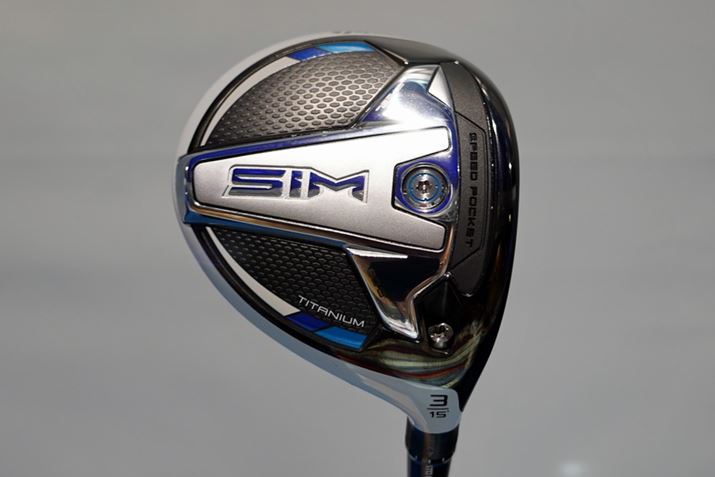 SIMフェアウェイウッド。チタンを採用した贅沢なモデル。かつての同社の名器「Vスチール」を模したソールを搭載し、180ccと大きめながらヌケのよさを実現させています