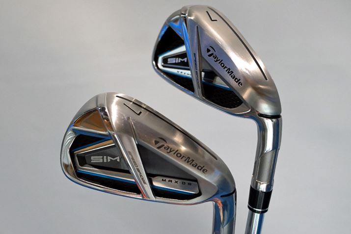 SIM MAXアイアン(上)とSIM MAX・OSアイアン(下)。どちらもミスに強く直進性を高めたモデルになっていますが、SIM MAX・OSアイアンのほうがヘッドがひと回り大きく、ロフトも立った設計になっています